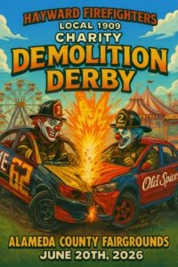 Thank you for showing interest in Hayward Fire’s Local 1909 Smash for Cash Demolition Derby. We have partnered with the Alameda County Fair and Jack James Towing to bring you the ultimate Summer showdown. All proceeds will benefit the Hayward Fire Charity Fund.